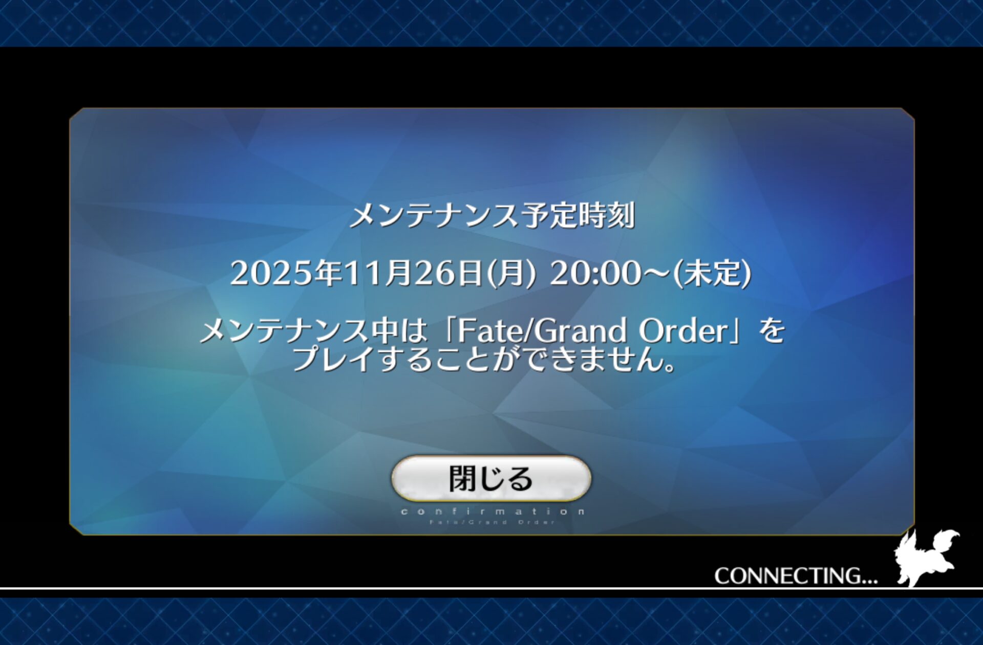 (11/6に突然メンテが始まった時の画像