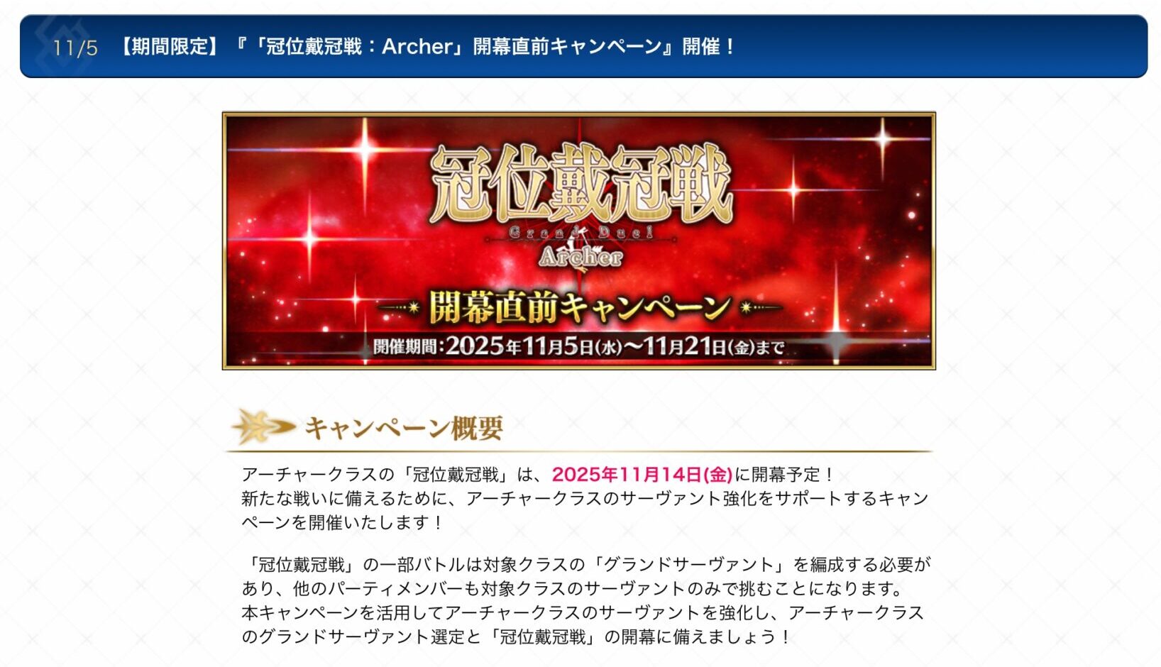 はい、という事でまずは、先週水曜日から始まった弓戴冠戦開幕直前キャンペーンについて。
