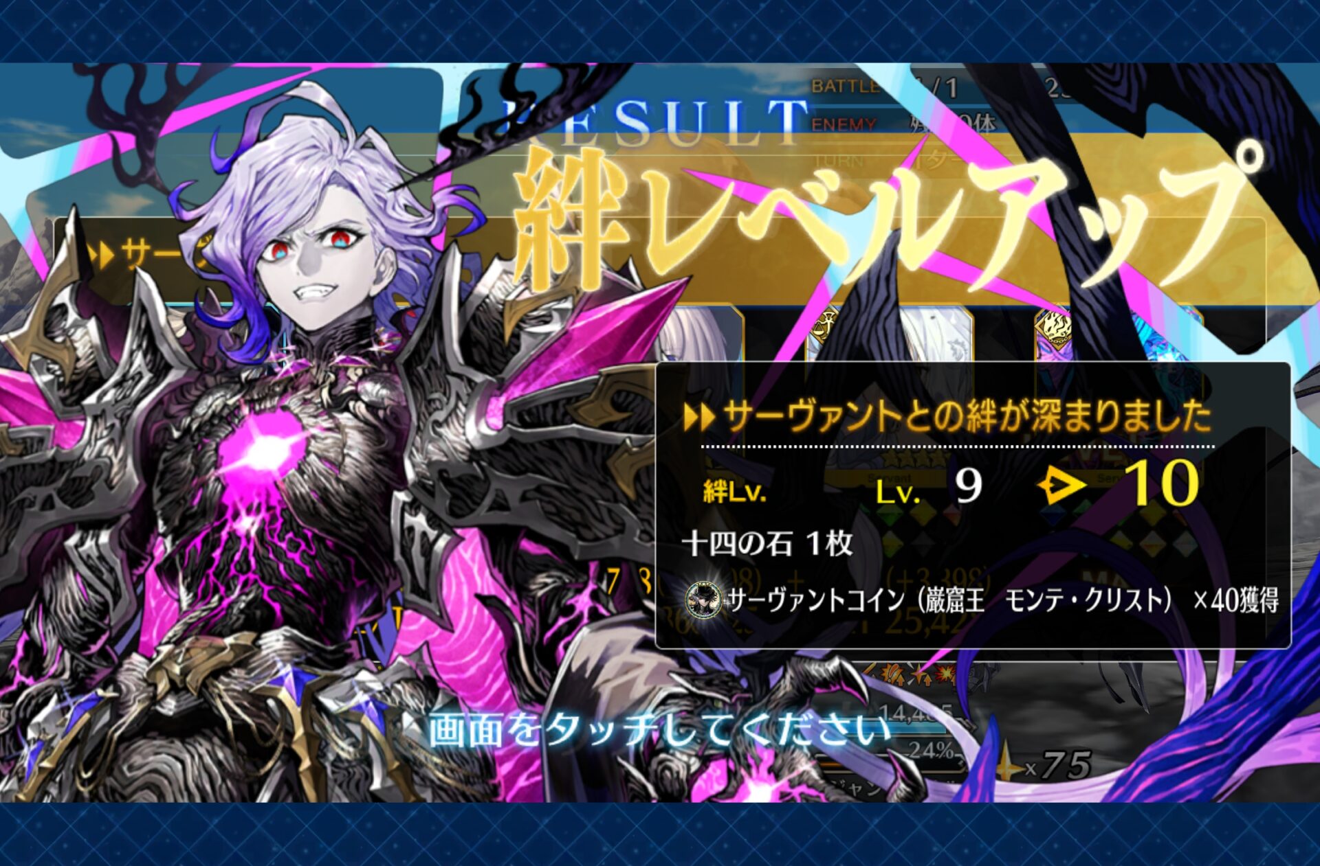 とはいえ、戴冠戦中に1レベルくらいは絆レベルが上がりそうですし、もう4レベル分くらいは、種火を用意しておきたいなーと思ったり。