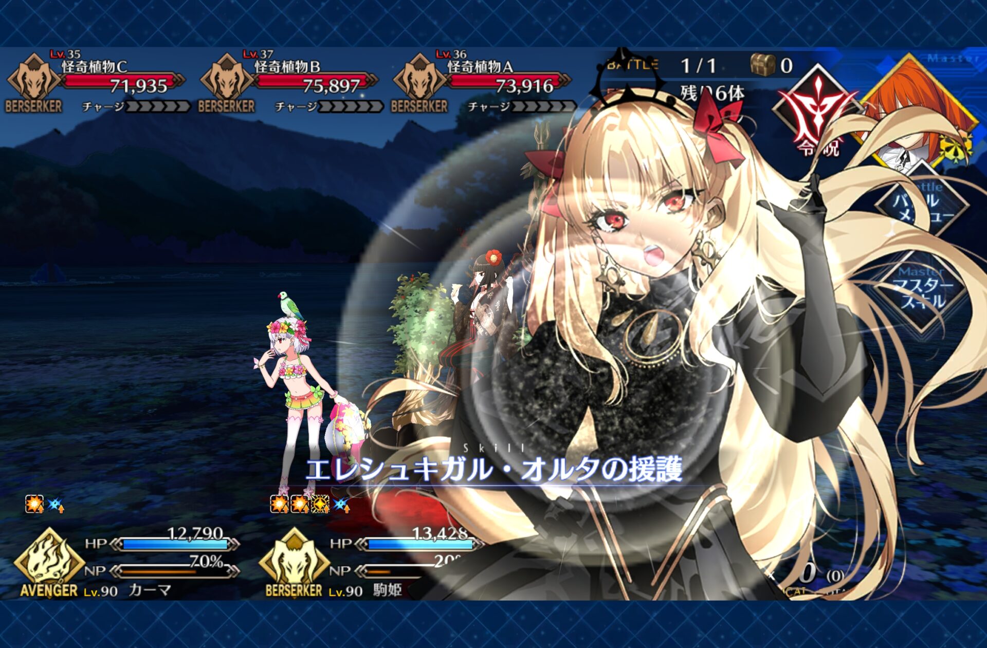 その他、弱体解除やHP回復、妨害に固定ダメージ増加等など、アタッカーにあるまじき器用さも誇り、総じてサポート攻撃なんでもござれな便利鯖。でも無敵貫通とかは無いし、サポート寄りかなー?と思ったり。