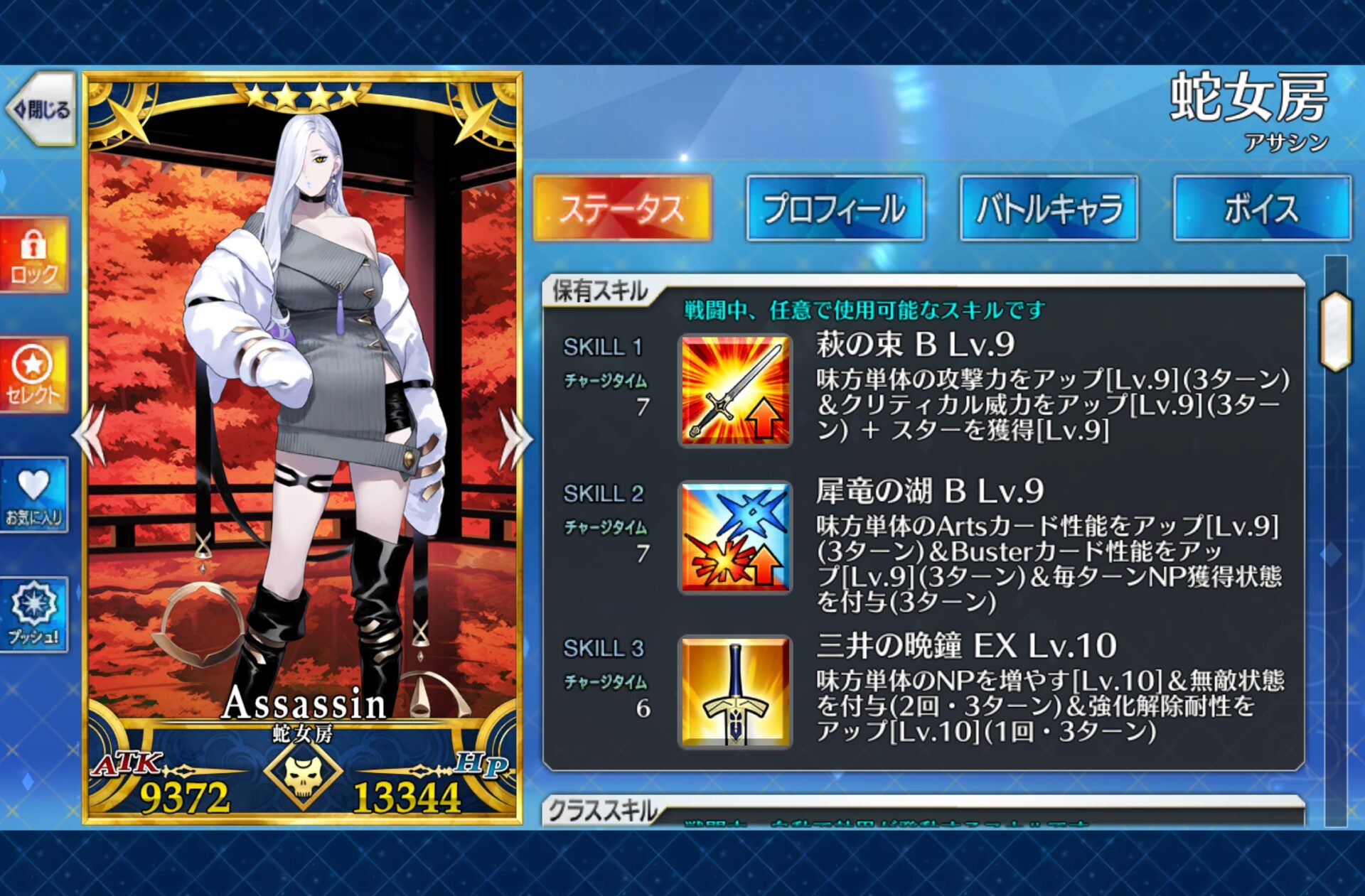 総じて、メルトリリスみたいなQアタッカーを運用する上で、欠かせないレベルの強力なサポート鯖。終章クリア済み且つ、アフタータイムを突き進むつもりのマスターにおかれましては、しっかり確保しておきたいところ。