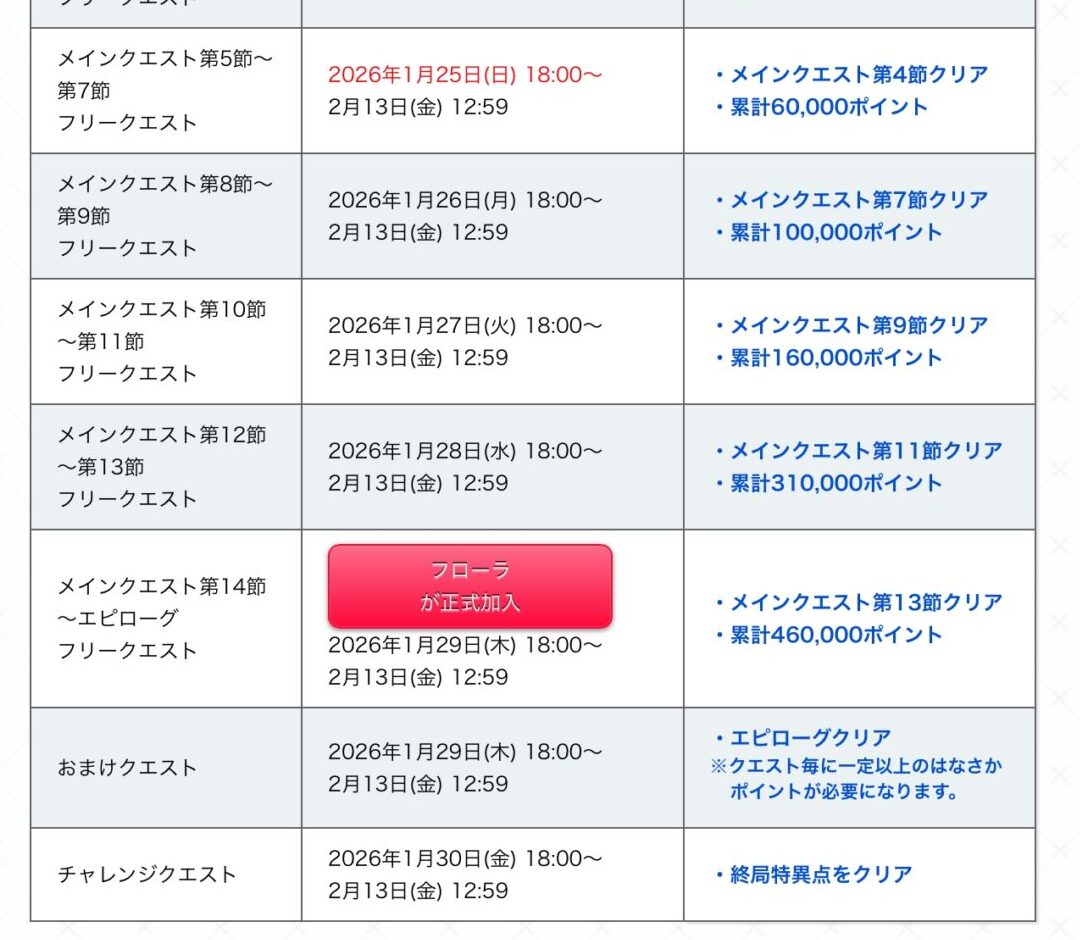 昨年末のタイミングでみんな終章踏破したよね!という事なのか、こんなふわふわした雰囲気に対して参加条件がアフタータイムの始まりクリアと極めて厳しい内容。