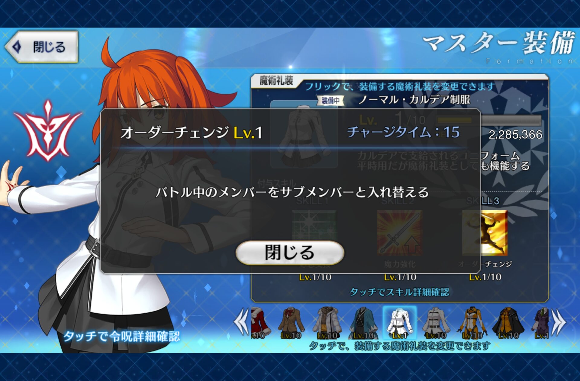 ノーマル・カルデア制服は結構早めに貰えるため、回収を忘れずに。