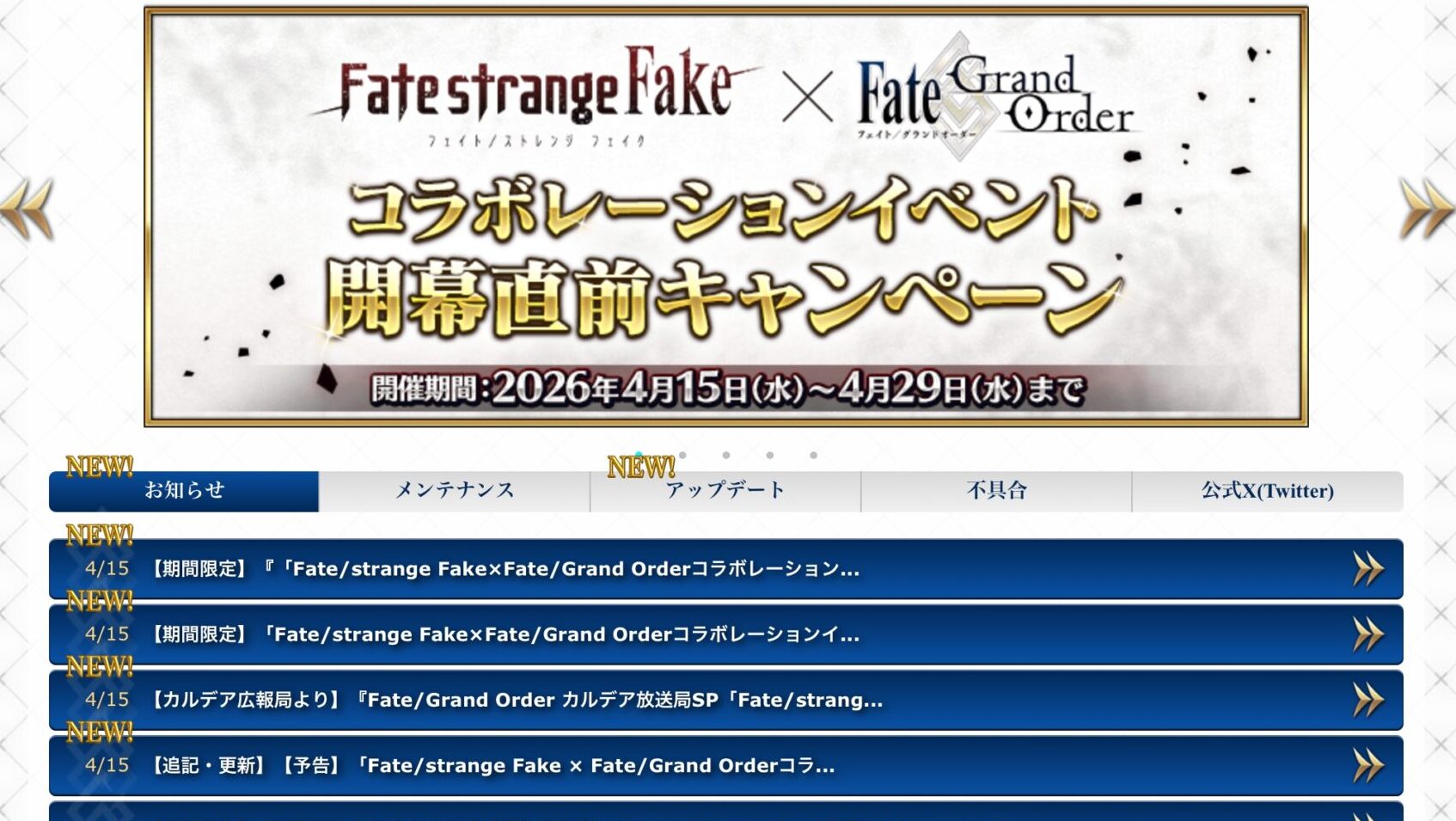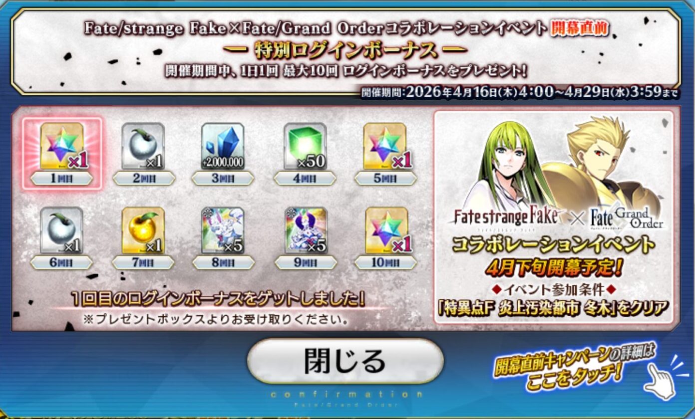 Fate/strange Fakeコラボイベントは、4月末に開催予定!