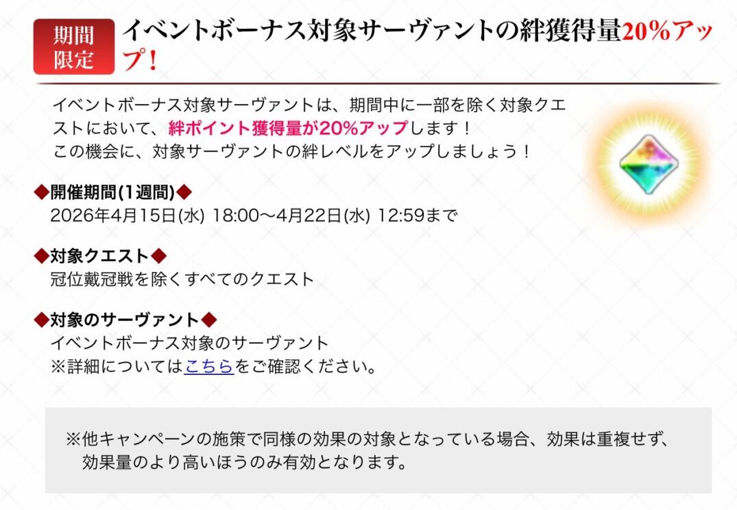 絆獲得量アップと、フレポ獲得量2倍今週水曜まで付与されています。