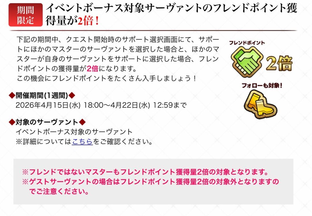 少しでもフレポを周回で稼いでいこう、と思う方は、今の期間はギルとかイシュタルとかオリオンを探しても良い…かも?しれない。